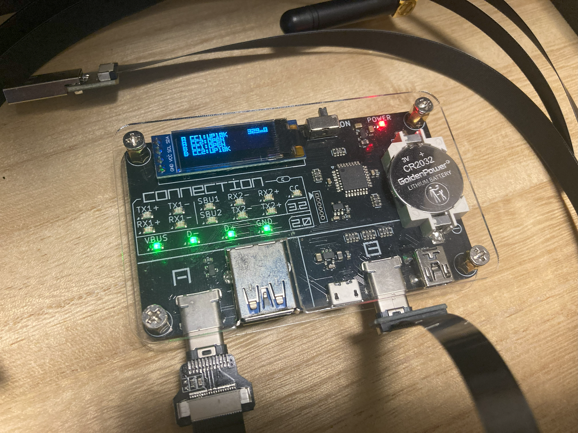 両端Type-Cのケーブルに変えました。抵抗値が400mΩ近くあるので大電流はダメそうですね。通信は普通に使えているレベルでした。