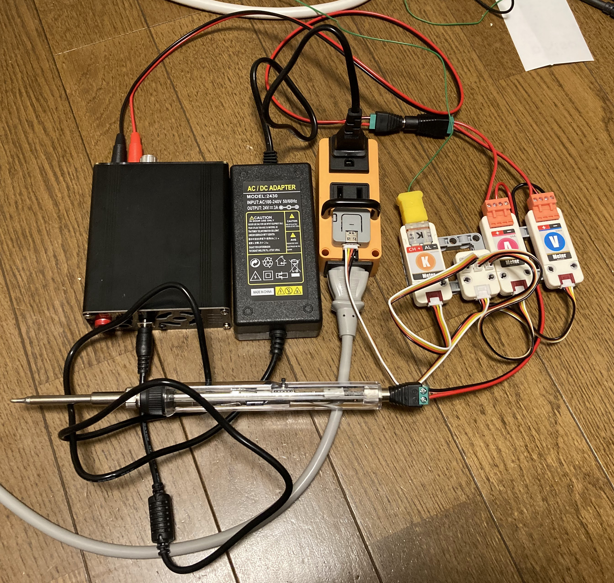 このハンダゴテは24V3Aが定格なのですが、このACアダプタも24V3Aで定格ぎりぎりです。基本的に中華系ACアダプタは定格の6割から8割で使うものなので完全に電源が足りないです。