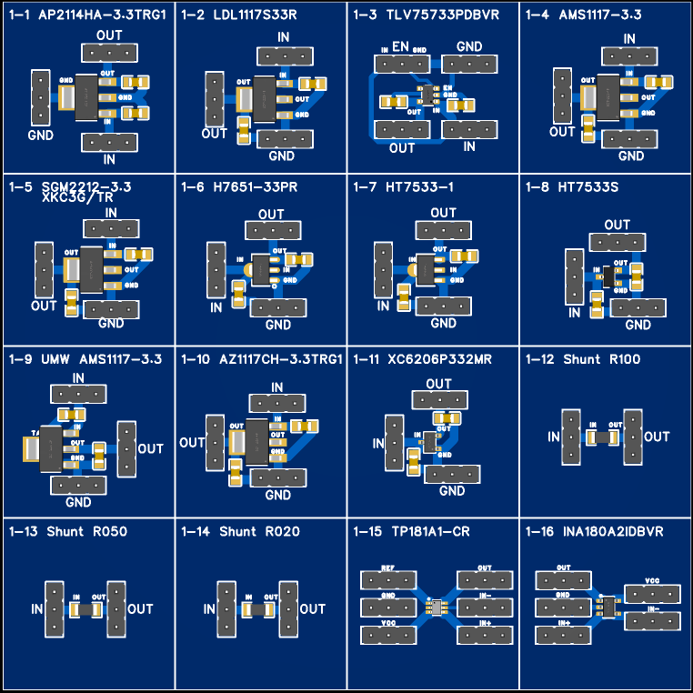 ESP32は動かないですが、ちょっとした電源用に3つ選びました。HT7533-1はJLCのBASIC Partsにあったもので、HT7533SはWCHの開発ボードで使われていてUSB PDとかで使えるように35Vまでの入力に対応しています。XC6206P332MRは250mAまでのもう少し電流が流れるタイプになります。