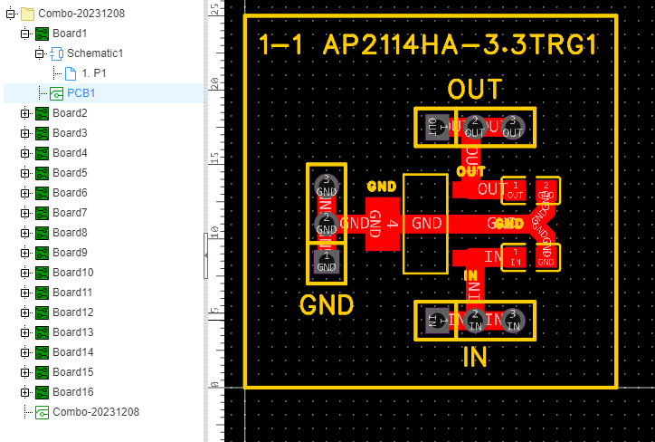 基板は上記のように管理しています。基板を最初に16個作って、個別に設計をしてDRCをできるようにしています。