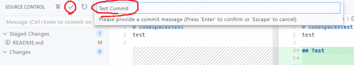 編集をして差分ができると、一番左のメニューバーに差分ありの表示がでます。中をみてみると変更されているファイルの一覧と、クリックすると差分がわかるようになっています。