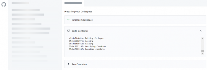 くるくる作成がまわりはじめました。今回はBuild ContainerがあってDockerイメージまわりの処理がはしっていますね。さっきより時間がかかると思います。