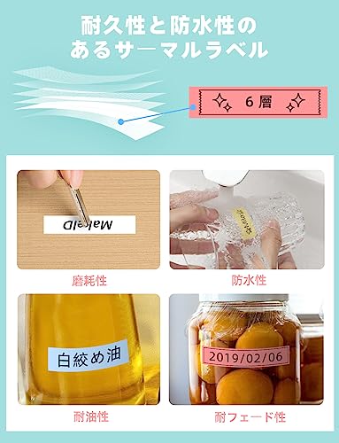 【ポータブルラベルプリンター】Bluetooth技術を使用し、無料でMAKEID-Lifeアプリを介して、手軽に幅16㎜カスタマイズラベルを作れる。MakeIDラベルライターは、プレカット/連続/クリア/カラーラベルを印刷できます。家用または中小企業向けの優れたミニラベル作成機です。