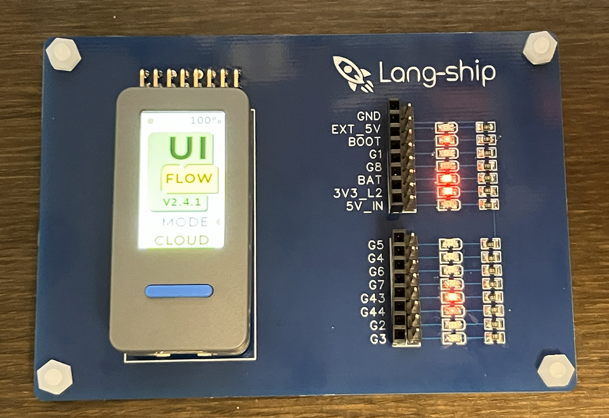 ちなみに初期ロットはダウンロードモードとかにすると非常にスピーカーがうるさいです。ノイズが乗ってしまうみたいでして、次回ロットからは改善しているとのことでした。M5Stack社の製品で初期ロットはいろいろ変なところが残っているので注意してください。