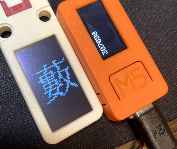 ちょっとだけ変更して、M5StickCと同時利用してみました。M5StickCの標準ライブラリを利用しているのでM5StickC本体だと日本語フォントを利用することができません。