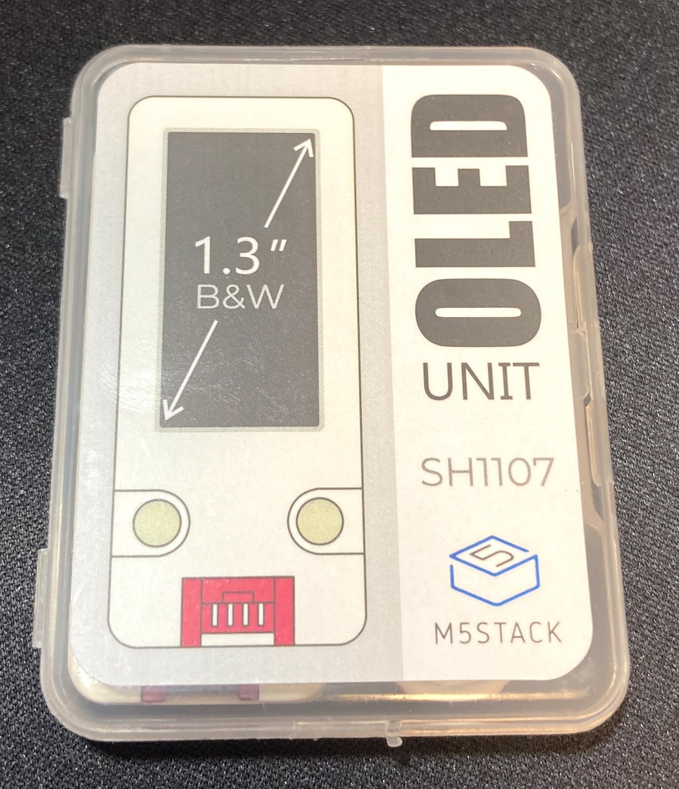 赤いコネクタなのでI2C接続のユニットになります。SH1107という1.3インチのモノクロ画面が搭載されているんですね。ちなみにこのユニットは特殊なのでパネルの種類はあまり関係ありません。