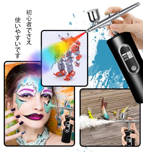 Fascinated エアブラシ 充電式 エアブラシ 残電量可視化 ダブルアクション 高中低の3つの気圧モードが調節可能 口径0.3mm ガンプラ ガンダムマーカー プラモデル 模型 塗装 軽量 小型