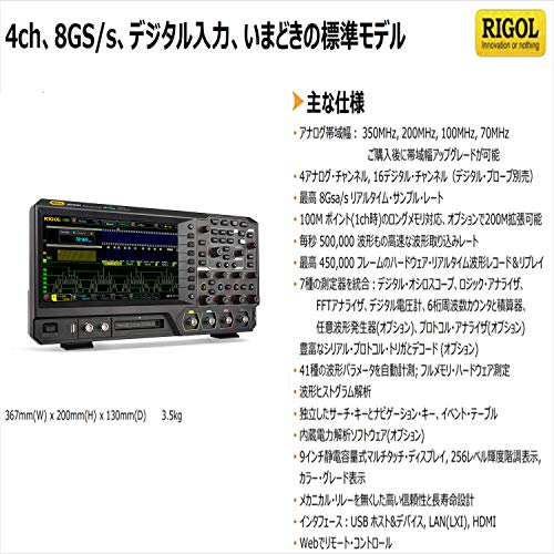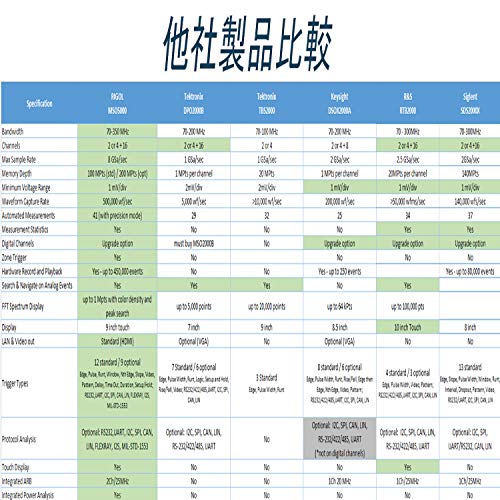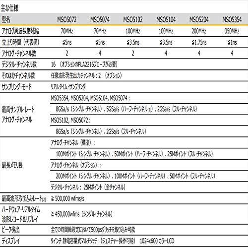 | アナログ・チャンネル サンプリング | 1 GSa/s(1チャンネル) 500 Msa/s(2チャンネル) 250 MSa/s(3/4チャンネル) | 8 GSa/s(1チャンネル) 5 GSa/s(2チャンネル) 2 GSa/s(3/4チャンネル) |
