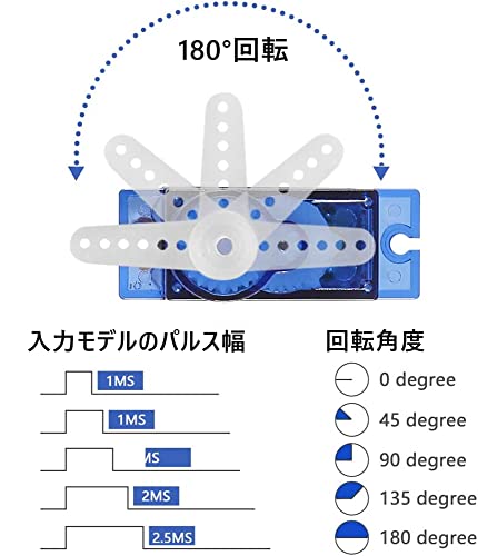 利用しているサーボは180度型のもので、ぐるりと180度回りますが出荷時にはどこにいるのかわかりません。そこでサーボフォンなどを利用して、どれぐらい回るのかをやさしく確認して、大体中央ぐらいの場所に移動させておきます。