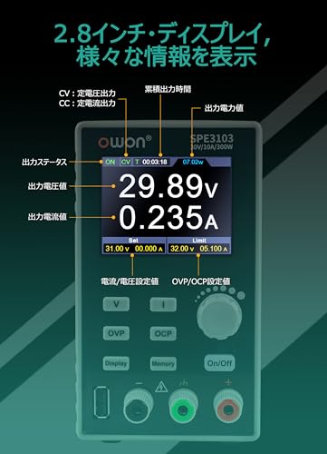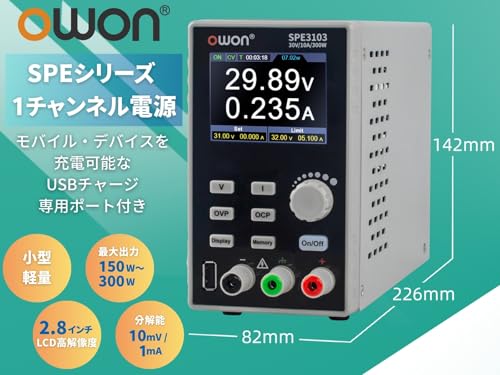 OWON SPE3051 プログラマブル 直流安定化電源 1CH 150W 30V / 5A DC電源 スイッチング電源 出力分解能 10mV / 1mA シーケンス出力 10ステップ 低ノイズ 低リプル USB SCPIコマンド 2.8インチLCD 静音 小型 軽量【日本語取扱説明書】【国内正規品・3年保証】