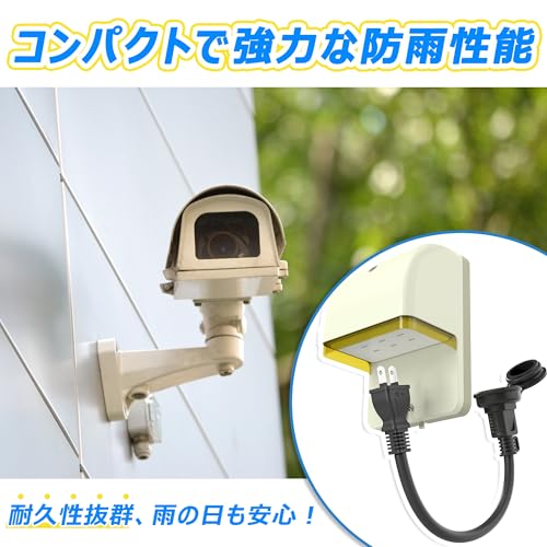 屋外設置はさらに大変でした。屋外用なのに付属しているACアダプタが巨大です。まず屋外にある野外用コンセントには差し込めませんので、延長ケーブルが必要となります。