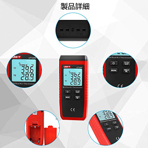 UNI-T 熱電対温度計 K/Jタイプ 温度差測定 温度センサー 高精度 -50-1300℃ デュアルチャンネル 温度計 デジタル 熱電対センサー 工業 数値記録 小型 手持ち LCDバックライト付き UT320D