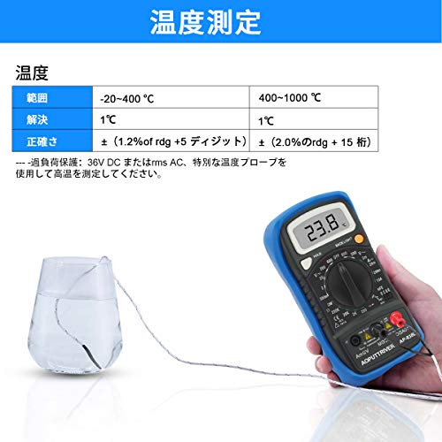 ➤【多機能マルチメーター】ハンドヘルドデジタルマルチメーター、測定DC電圧範囲:200m〜600V、ACボルト200〜600V、DCアンペア数2m〜10A(分解能1マイクロアンペア)、抵抗200〜20Mオーム、温度-20〜1000℃。 (Kタイプ熱電対付属)