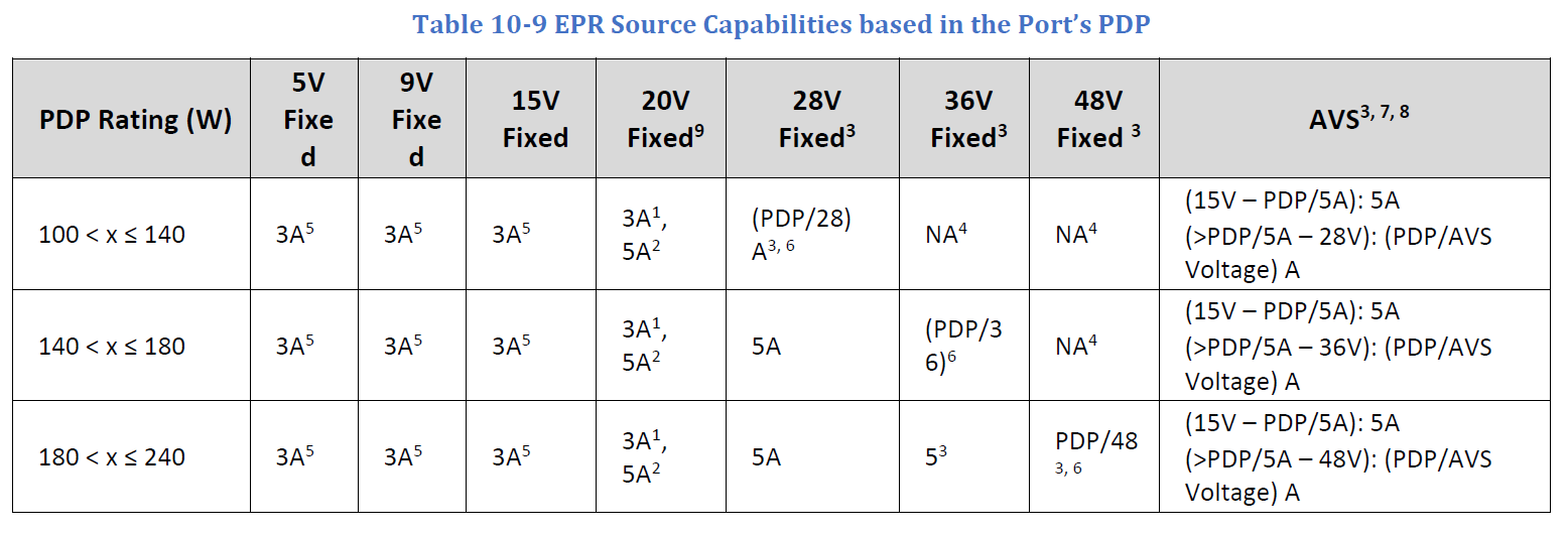 100W以上をサポートする場合です。Extended Power RangeでEPRと呼びます。20Vのところに3Aが出てきました。これはケーブルが3Aまでの場合があるので、ケーブルをみて上限を決めろということでした。それって表10-7でも同じことですよね、、、