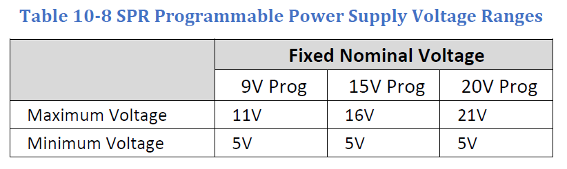 規定はこんな感じで、5V以上からサポートする電圧+ちょっと上まで出せる必要があります。概ね3.3Vから21Vぐらいの範囲で対応可能な電圧を出している物が多いです。