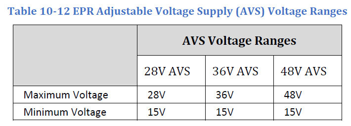 ちなみに20Vを超えた場合にはEPR Adjustable Voltage Supply (AVS)でPPSではなくEPR AVSという名前がついています。AVSの場合には電圧は100mV単位で、電流制限はついていないので注意してください。