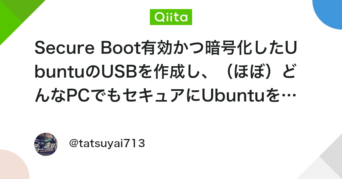 Ubuntuのセットアップ用USBはセキュアブート対応であり、インストール時にセキュアブート用の設定をいれることでセキュアブートに対応したUbuntu環境を構築することが可能です。