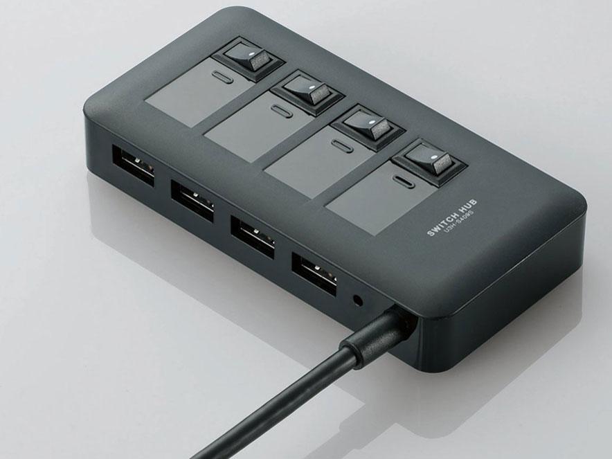 こちら最近販売された商品で、実はもともと選定しているときにはまだ発表されていませんでした。7ポート以上でセルフパワー対応で、スイッチ付きはだいたいサンワダイレクトさんの製品しかありません。