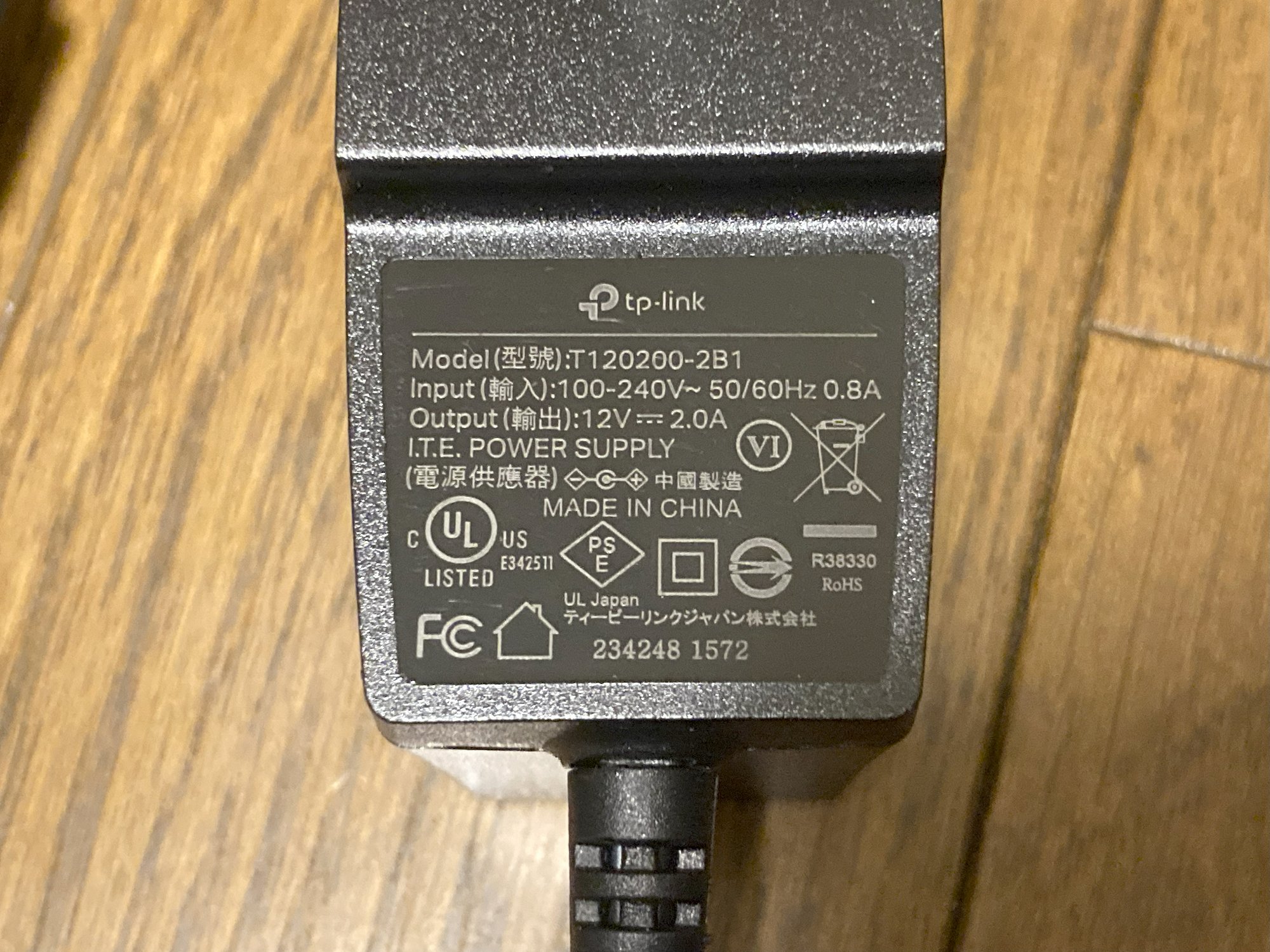 ACアダプタはもちろんPSE対応で12Vの2Aでした。