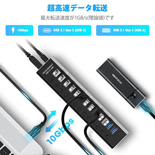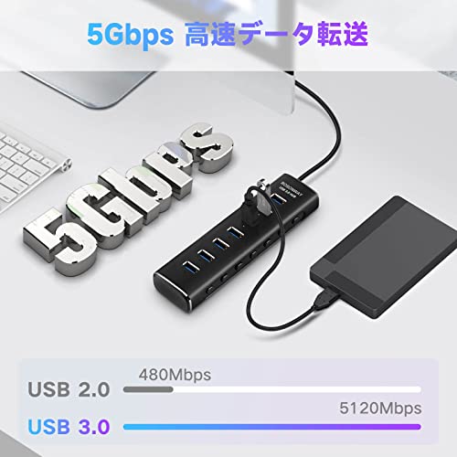 上記に速度をまとめたものがありますが、USB2.0は480Mbpsまでで、USB3は5Gbpsから80Gbpsまであります。そのうち10Gbps以上に対応しているUSBハブはほとんどありません。