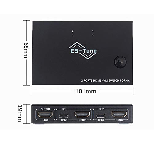 ES-Tune HDMI KVM切替器 2入力1出力 USB2.0&Type-C端子対応 4K@60Hz 手動/有線リモート切替 電源不要 HDMI USBケーブル付属 日本語取扱説明書付き Mac/Windows/Linux対応