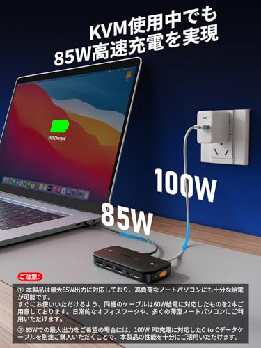 Anker KVM Switch (4K, For デスクトップ & ノートPC) 11-in-1 切替器100W PD対応 4K 60Hz HDMIポート 5Gbps高速データ転送 USB-A,Cポート搭載 ワンクリックで2台のパソコンを簡単切替 MacBook/iPad/Dell/Steam Deck 他対応